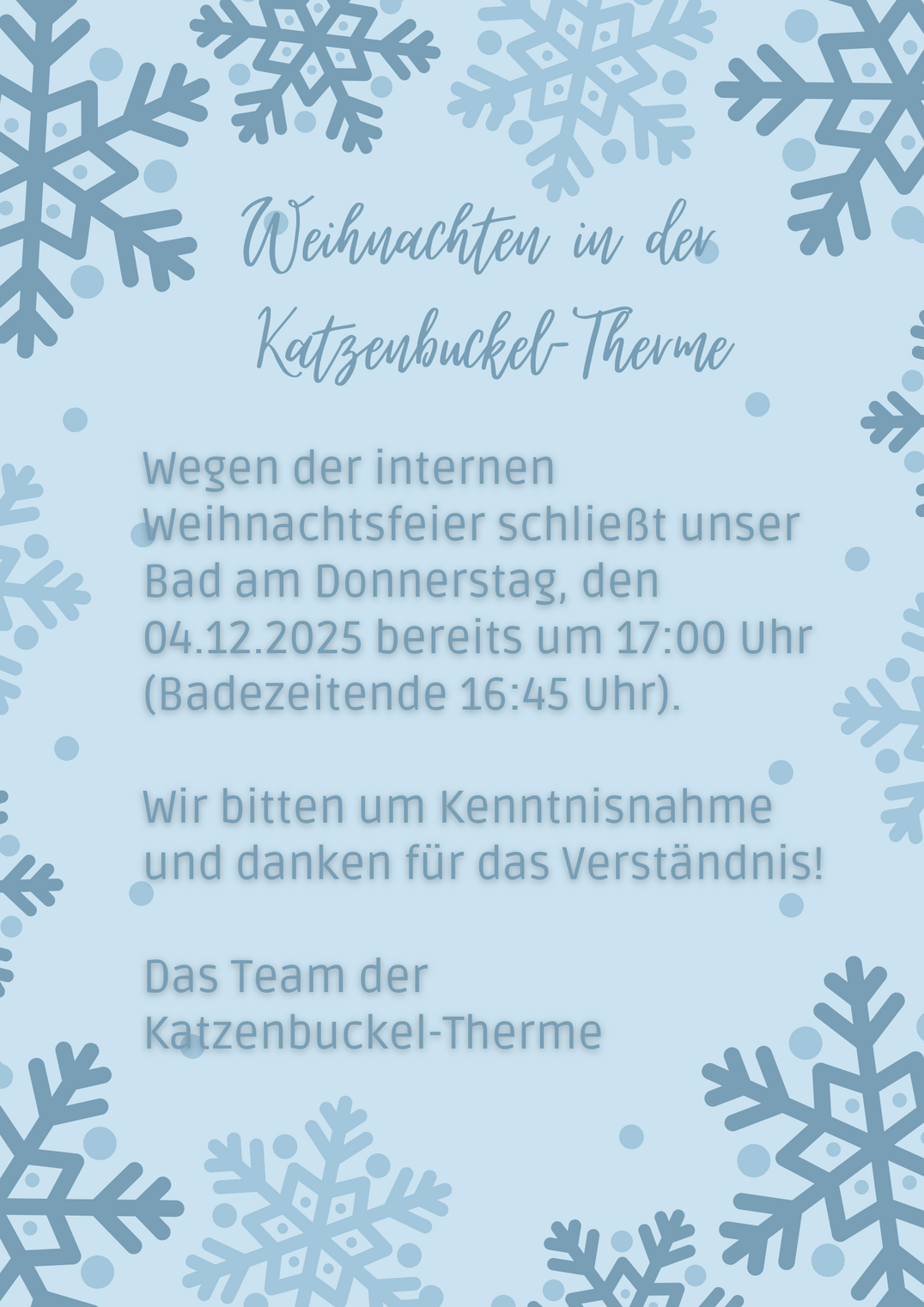 | (Badezeitende jeweils 19:45 Uhr) | |